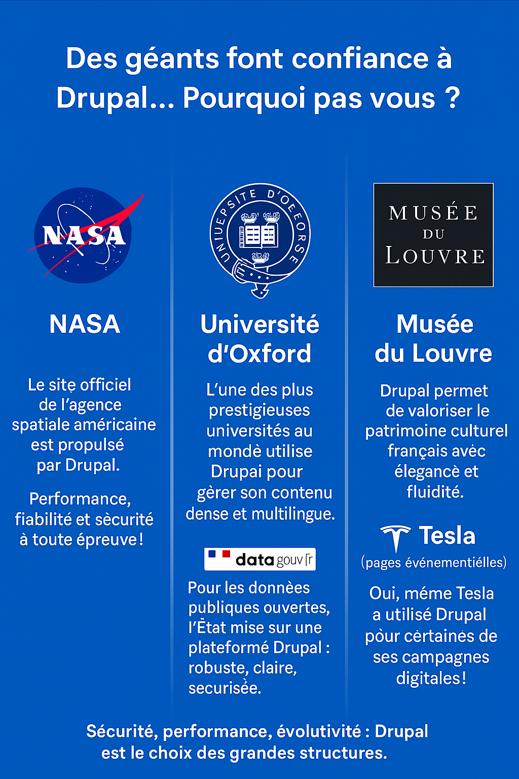 👉 En résumé : choisir Drupal, c’est opter pour la puissance, la sécurité et la flexibilité.